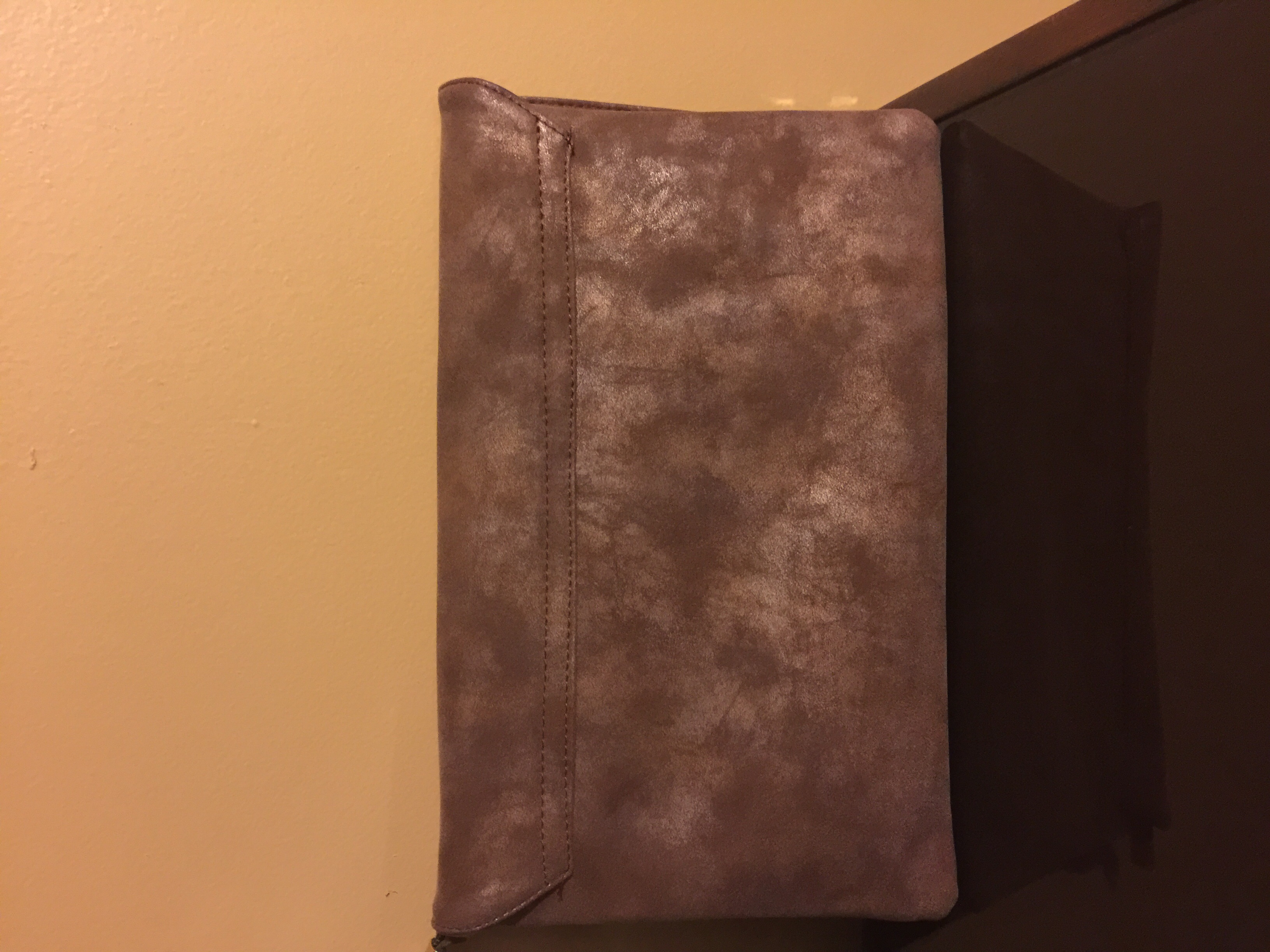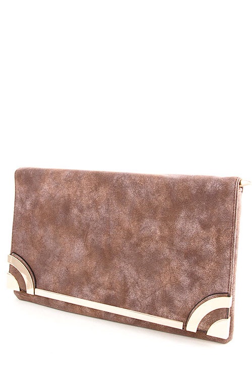 Size: 13"L x 9"h Magnetic snap closure Detachable chain strap Splashes of gold throughout the entire clutch