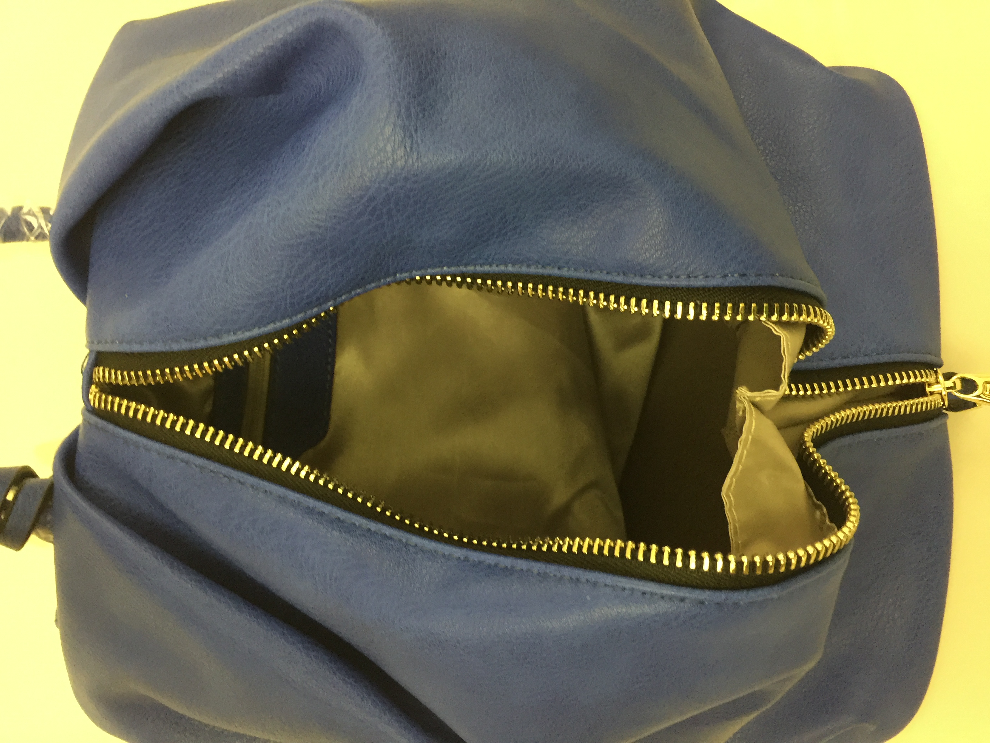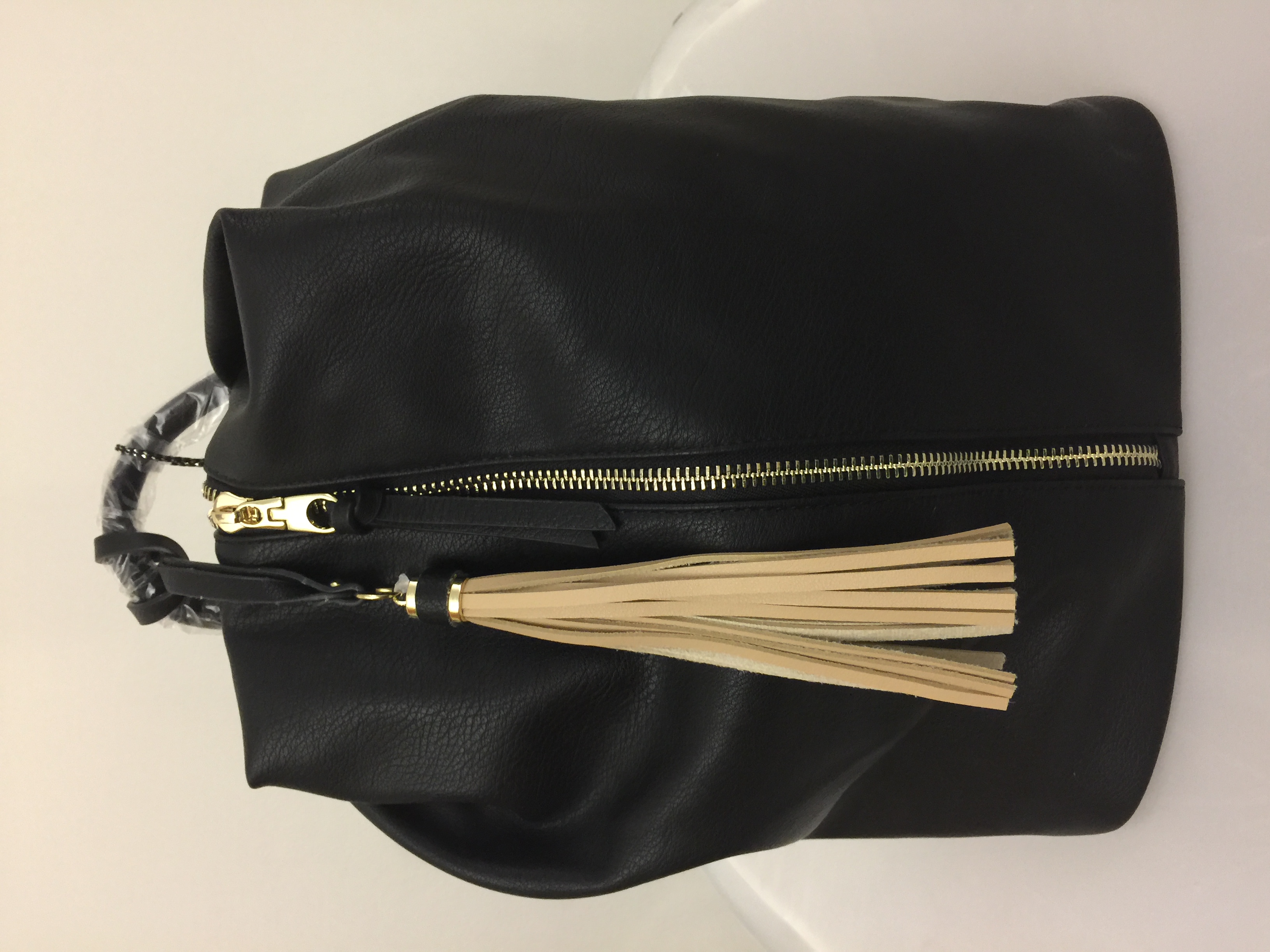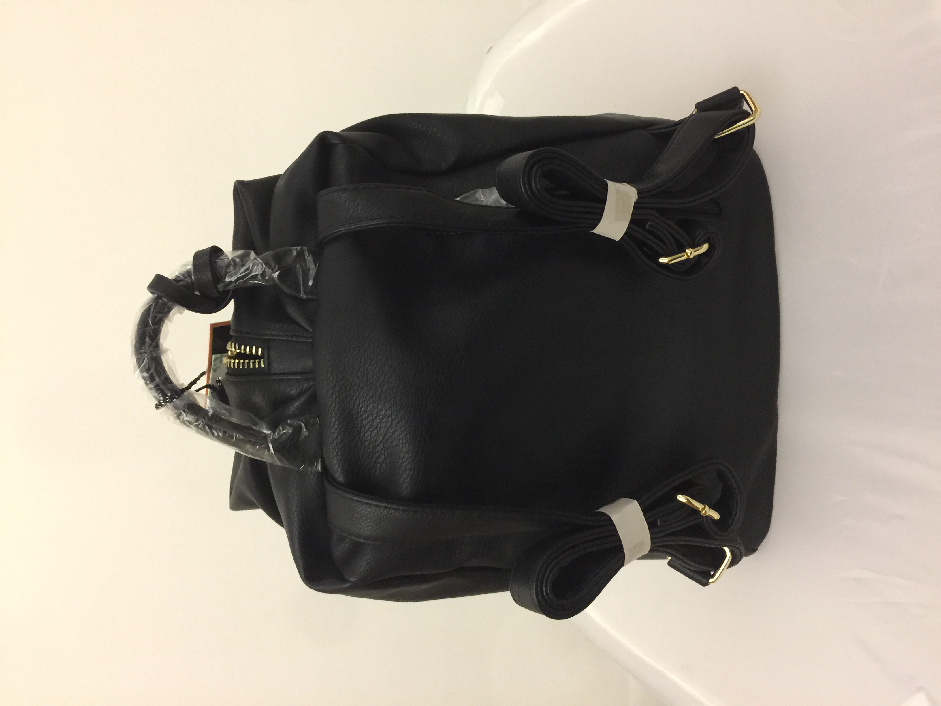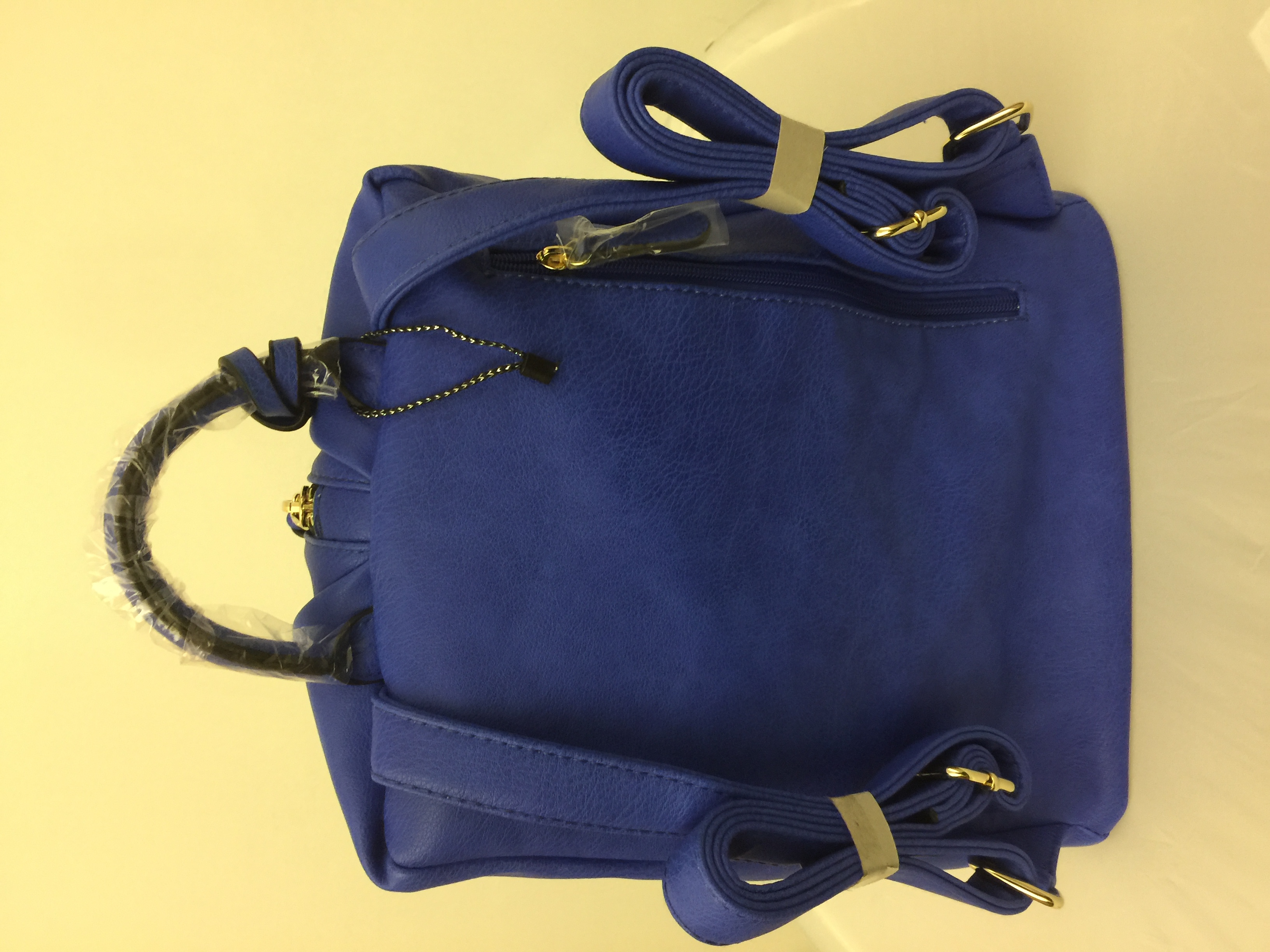 Zip top closure High quality faux leather Rear zipper pocket Inside lining w/ open/zipper pockets 37" adjustable/detachable strap 11.5" x 7"D x 14"H
